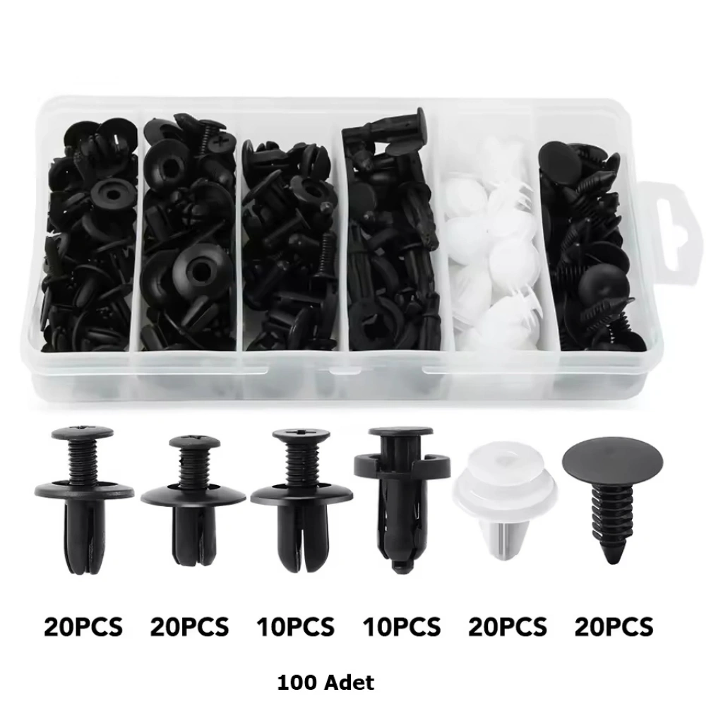 Aracınızdaki plastik parçaları sabitlemek artık çok daha kolay! Bu 100 parçalık oto klips seti, farklı ebat ve tasarımlara sahip 6 farklı klips çeşidi ile birlikte gelir. Tampon, kapı döşemesi, çamurluk, motor koruma kapağı gibi birçok alanda rahatlıkla kullanılabilir. Dayanıklı plastikten üretilmiş olup, yüksek esneklik ve uzun ömür sağlar.
