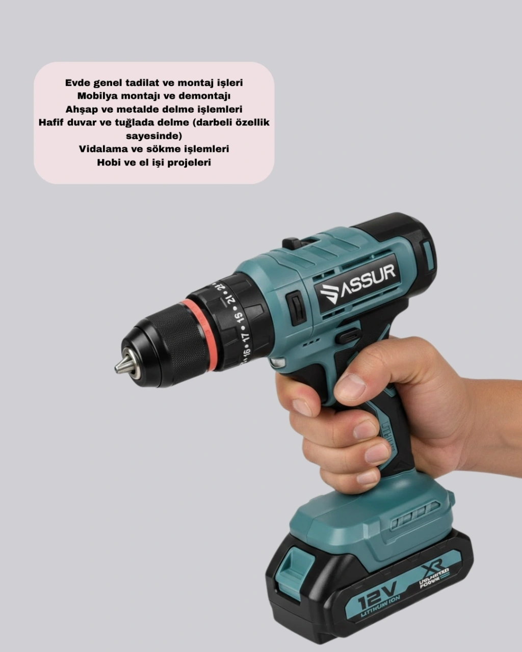 Profesyonel performansı kompakt bir tasarımla birleştiren bu dijital matkap seti, 18 parça aksesuar içeriği ile çok yönlü kullanım sunar. Çift batarya desteği, uzun süreli ve kesintisiz çalışma avantajı sağlar.Şarjlı yapısı sayesinde kabloya ihtiyaç duymadan her ortamda kullanılabilir. Dijital ekran, kullanım sırasında kontrolü kolaylaştırır ve modern bir deneyim sunar.Dayanıklı, güçlü ve pratik bir matkap arayanlar için ideal bir tercihtir.