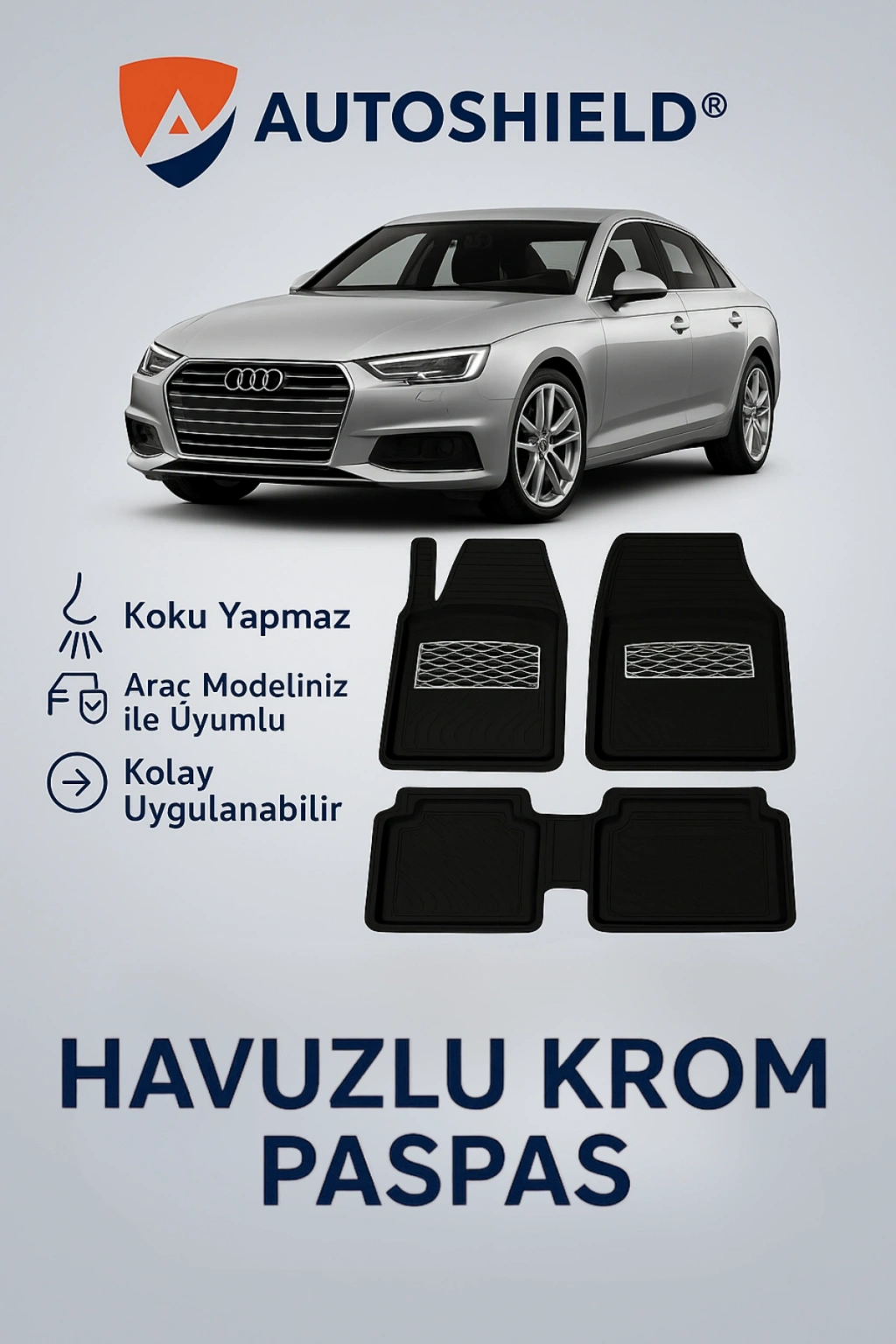 Ürün, Audi A4 serisinin tüm modelleri ile uyumlu universal ölçülerde üretilmiştir. Kaymaz taban yapısı sayesinde sürüş sırasında sabit kalır ve güvenli kullanım sunar. Dayanıklı, esnek ve kokusuz TPE malzeme yapısı ile uzun ömürlüdür, deformasyona karşı dirençlidir.