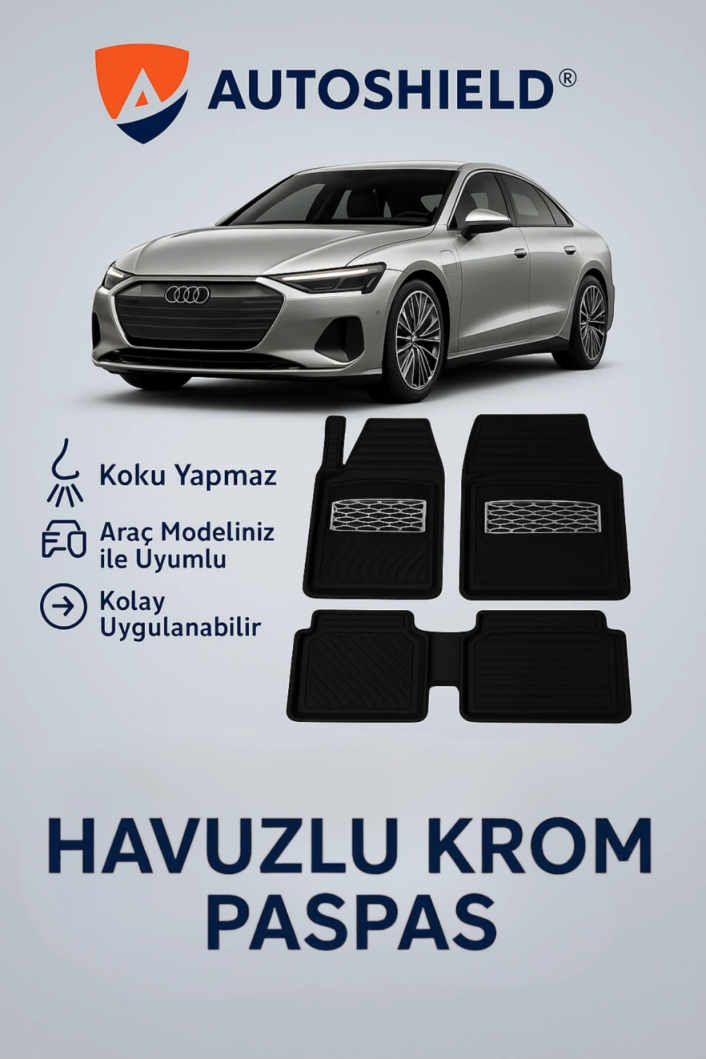 Audi A6 E-Tron sahipleri için özel olarak tercih edilen bu derin havuzlu paspas seti, hem aracınızı korur hem de iç mekâna premium bir görünüm kazandırır. Lüks, konfor ve dayanıklılığı tek üründe birleştirir.