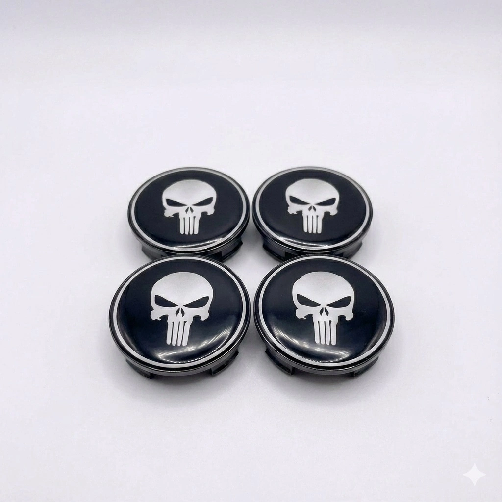 Beyaz Punisher Damla Geçme Jant Göbek Kapağı 4’lü Set 55/58mm Siyah