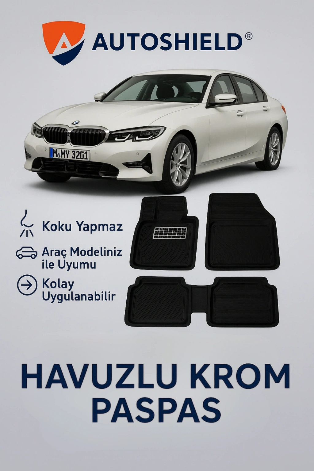 BMW 3 Seris Tüm Modeller ile Uyumlu Universal Derin Havuzlu Krom Karbon Paspas