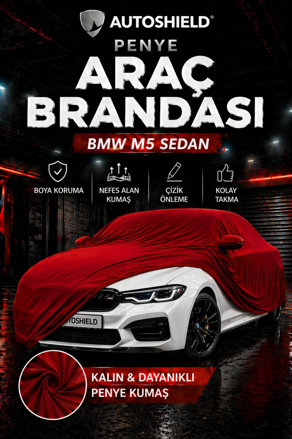 BMW M5 Sedan Penye Araç Brandası Kumaş Garaj Brandası Oto Koruma Örtüsü Kırmızı