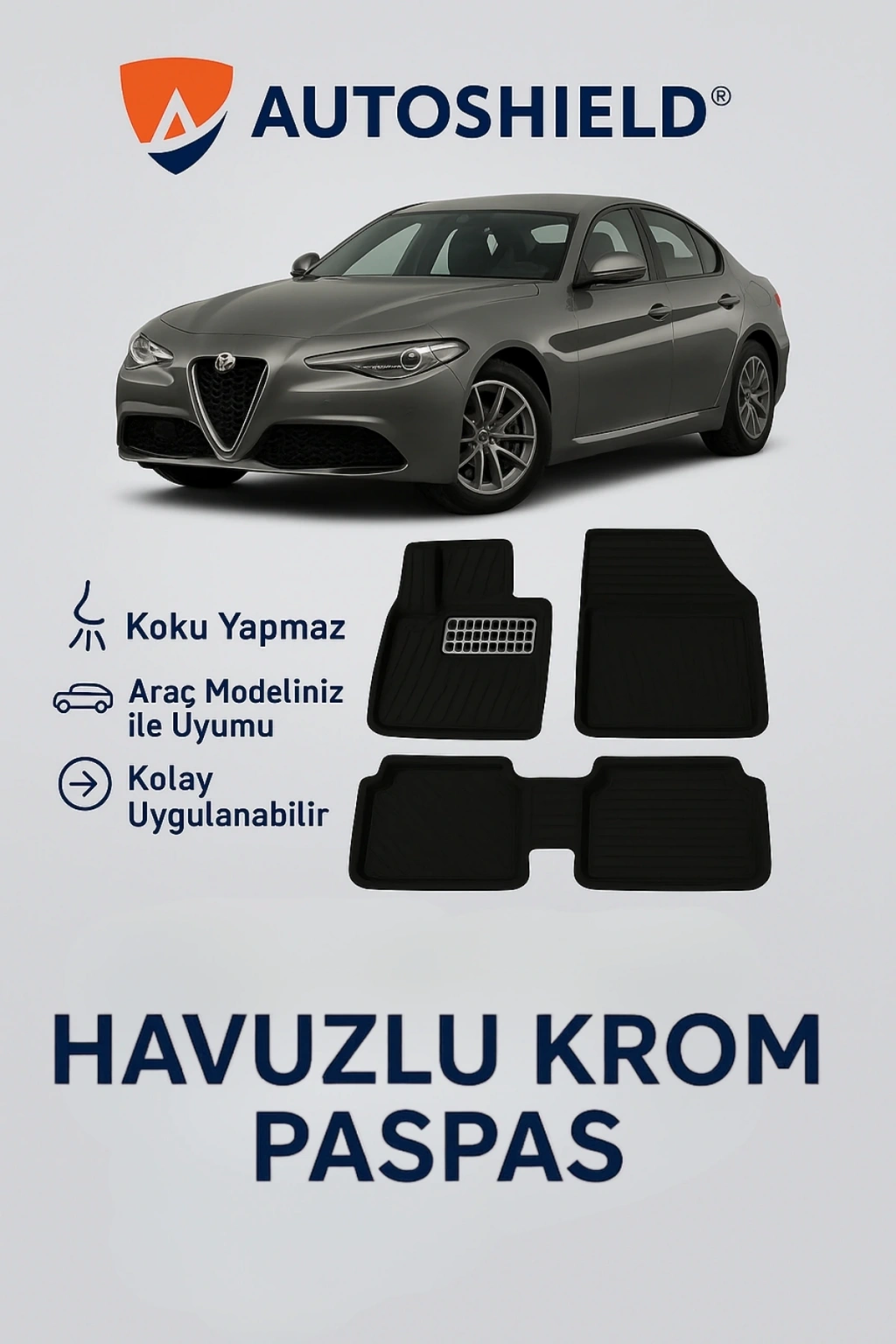 Ürün, Alfa Romeo Giulia Serisi serisinin tüm modelleri ile uyumlu universal ölçülerde üretilmiştir. Kaymaz taban yapısı sayesinde sürüş sırasında sabit kalır ve güvenli kullanım sunar. Dayanıklı, esnek ve kokusuz TPE malzeme yapısı ile uzun ömürlüdür, deformasyona karşı dirençlidir.