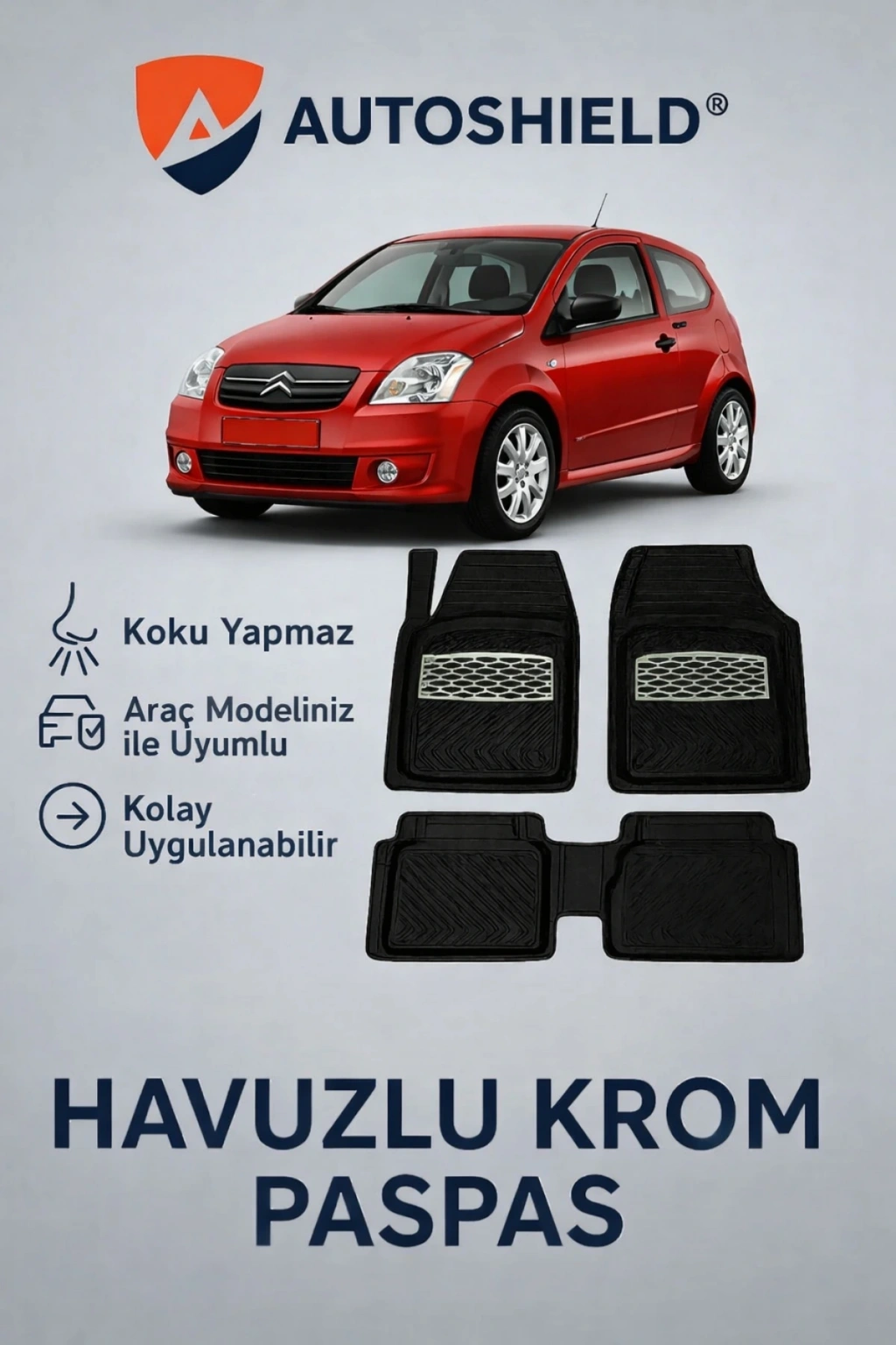 Ürün, Citroen C2 Serisi serisinin tüm modelleri ile uyumlu universal ölçülerde üretilmiştir. Kaymaz taban yapısı sayesinde sürüş sırasında sabit kalır ve güvenli kullanım sunar. Dayanıklı, esnek ve kokusuz TPE malzeme yapısı ile uzun ömürlüdür, deformasyona karşı dirençlidir.