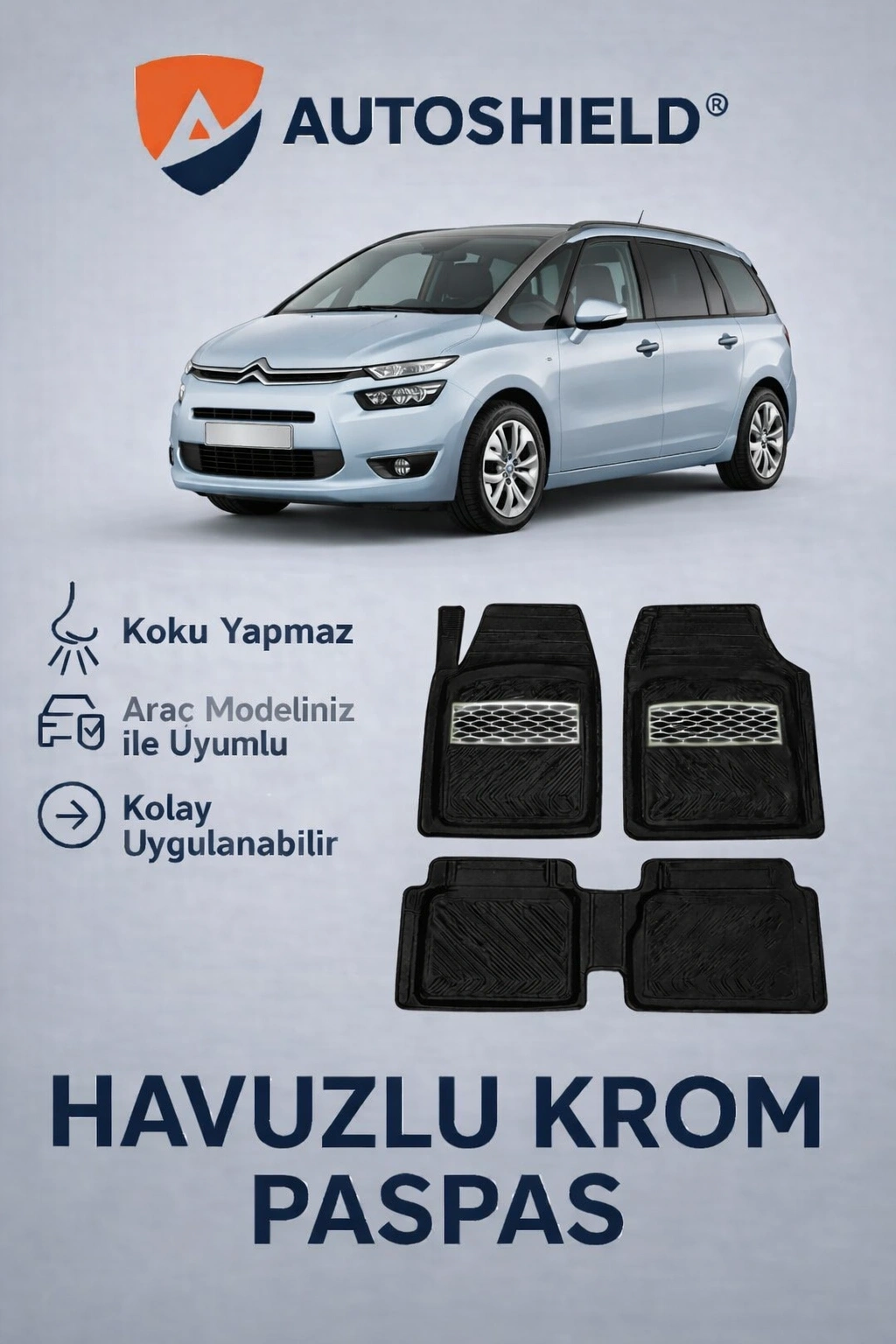 Ürün, Citroen C4 Grand Picasso Serisi serisinin tüm modelleri ile uyumlu universal ölçülerde üretilmiştir. Kaymaz taban yapısı sayesinde sürüş sırasında sabit kalır ve güvenli kullanım sunar. Dayanıklı, esnek ve kokusuz TPE malzeme yapısı ile uzun ömürlüdür, deformasyona karşı dirençlidir.