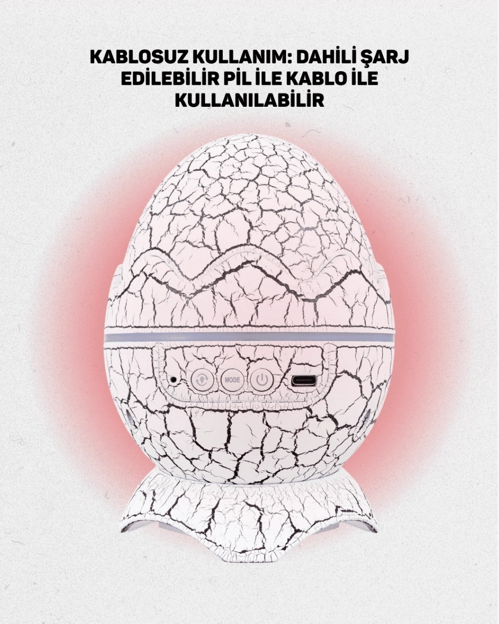 Bu ürün sadece bir ışık kaynağı değil, aynı zamanda dekoratif bir objedir. Dinozor yumurtası formu sayesinde çocukların ilgisini çekerken, ev dekorasyonuna modern ve eğlenceli bir dokunuş katar. Gece uykusuna geçişi kolaylaştırır, huzurlu bir atmosfer sunar. Partilerde, film gecelerinde ya da meditasyon zamanlarında kullanılarak çok yönlü bir kullanım sağlar.