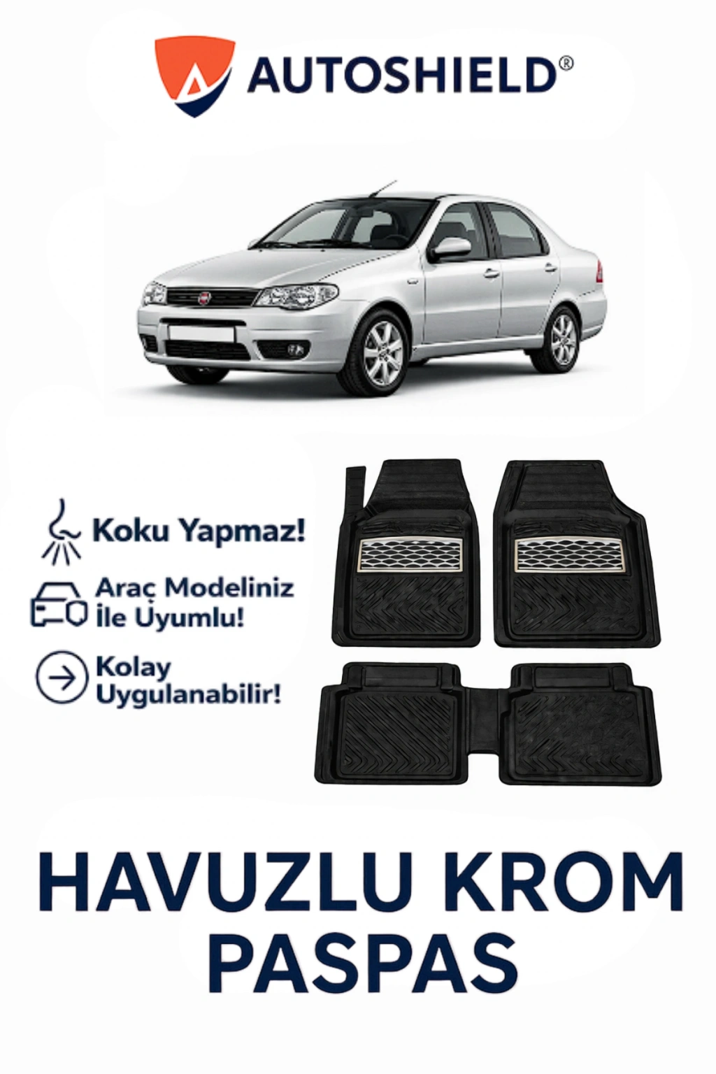 Fiat Albea Serisi Tüm Modeller ile Uyumlu Universal Derin Havuzlu Krom Karbon Paspas