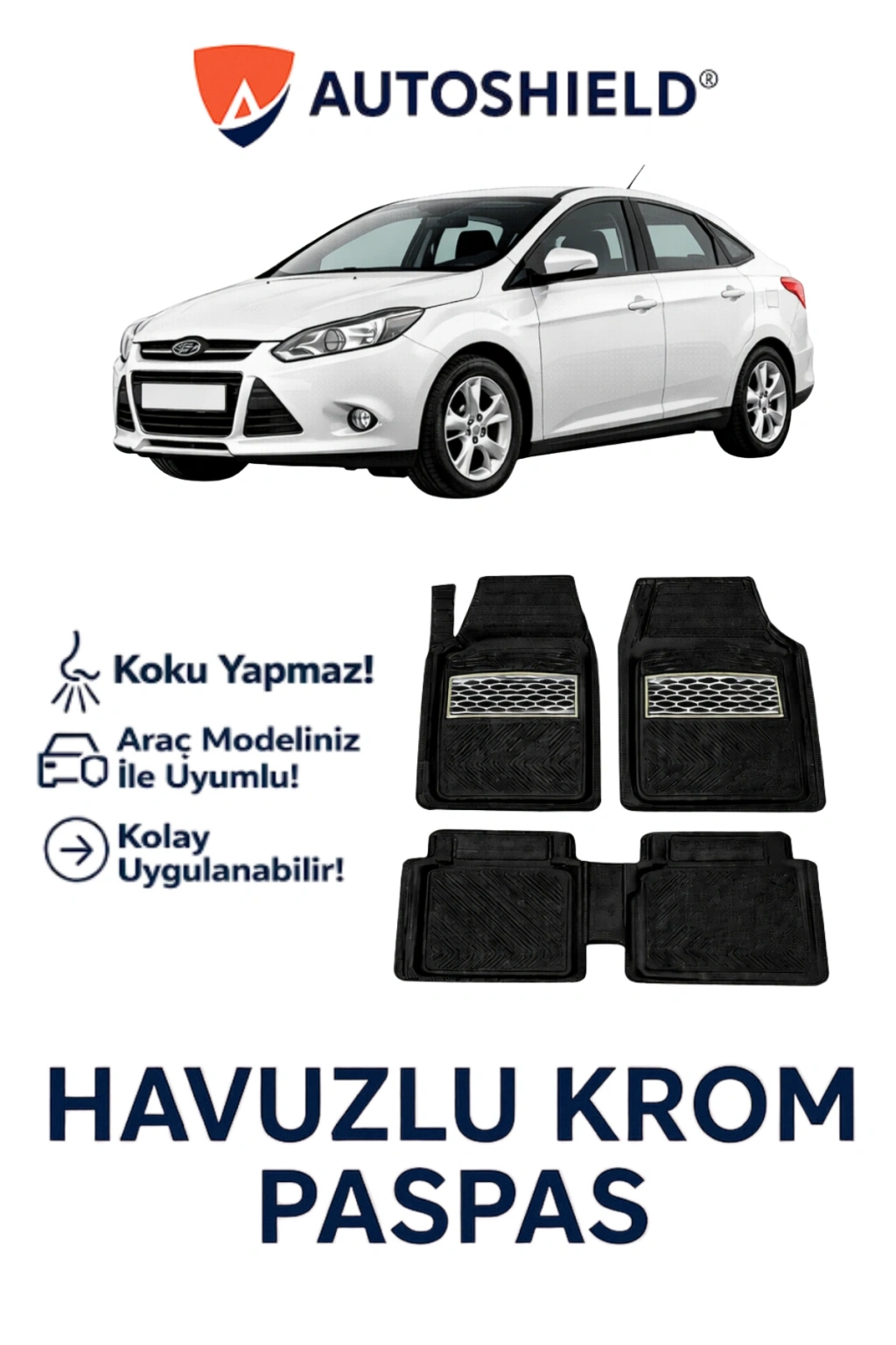 Ürün, Ford Focus Serisi serisinin tüm modelleri ile uyumlu universal ölçülerde üretilmiştir. Kaymaz taban yapısı sayesinde sürüş sırasında sabit kalır ve güvenli kullanım sunar. Dayanıklı, esnek ve kokusuz TPE malzeme yapısı ile uzun ömürlüdür, deformasyona karşı dirençlidir.