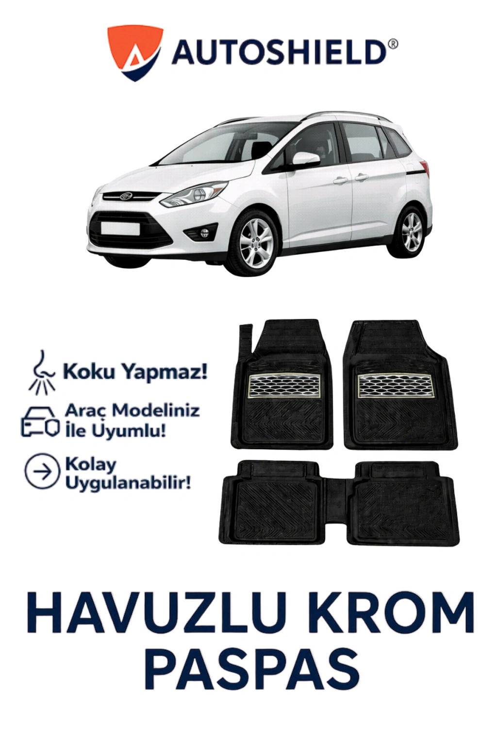 Ürün, Ford Grand C-Max Serisi serisinin tüm modelleri ile uyumlu universal ölçülerde üretilmiştir. Kaymaz taban yapısı sayesinde sürüş sırasında sabit kalır ve güvenli kullanım sunar. Dayanıklı, esnek ve kokusuz TPE malzeme yapısı ile uzun ömürlüdür, deformasyona karşı dirençlidir.