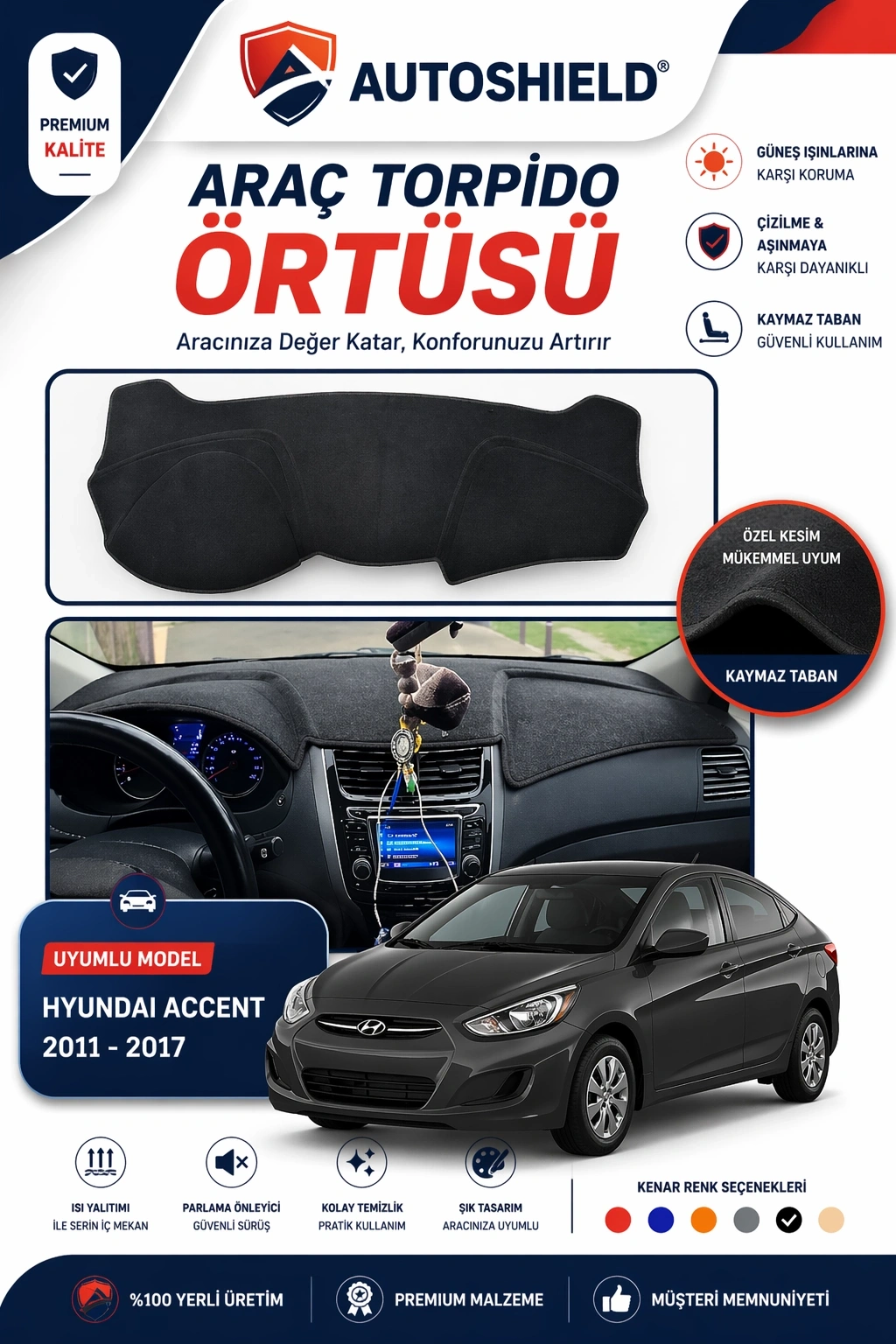 AutoSheild Hyundai Accent Blue Torpido Örtüsü Torpido Örtüsü