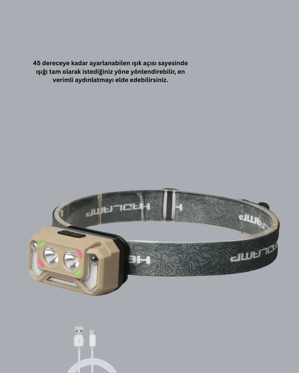 Hareket sensörlü LED kafa lambası, modern tasarımı ve fonksiyonel özellikleriyle outdoor kullanıcılar için geliştirilmiştir. Wave sensör teknolojisi sayesinde tek bir el hareketiyle kontrol edilebilir ve tamamen pratik bir kullanım sağlar.45 derece ayarlanabilir ışık açısı, farklı çalışma ve kullanım senaryolarında maksimum verim sunar. Güçlü LED ışığı, karanlık ortamlarda uzun menzilli aydınlatma sağlayarak görüş alanınızı genişletir.Şarj edilebilir yapısı sayesinde çevre dostu ve ekonomiktir. Kamp, balık tutma, yürüyüş ve gece sürüşleri için güvenle kullanılabilir.