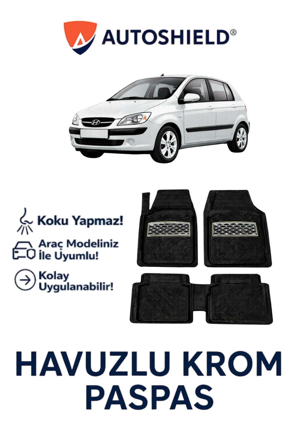 Hyundai Getz Serisi Tüm Modeller ile Uyumlu Universal Derin Havuzlu Krom Karbon Paspas