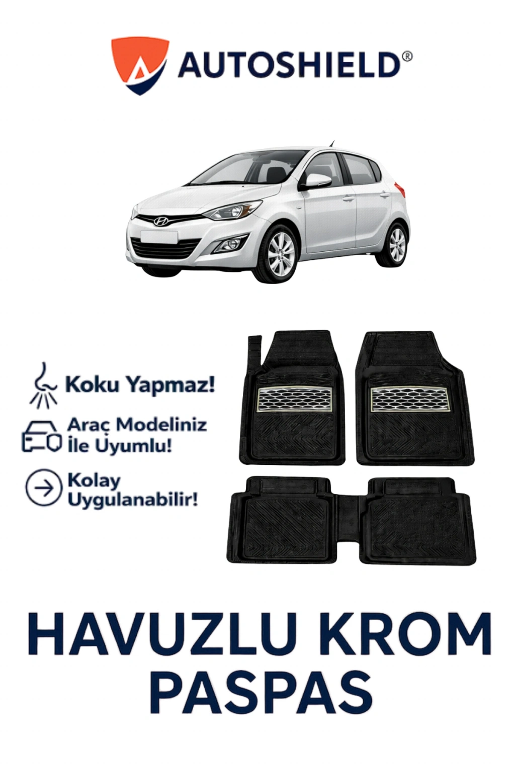 Hyundai i20 Serisi Tüm Modeller ile Uyumlu Universal Derin Havuzlu Krom Karbon Paspas