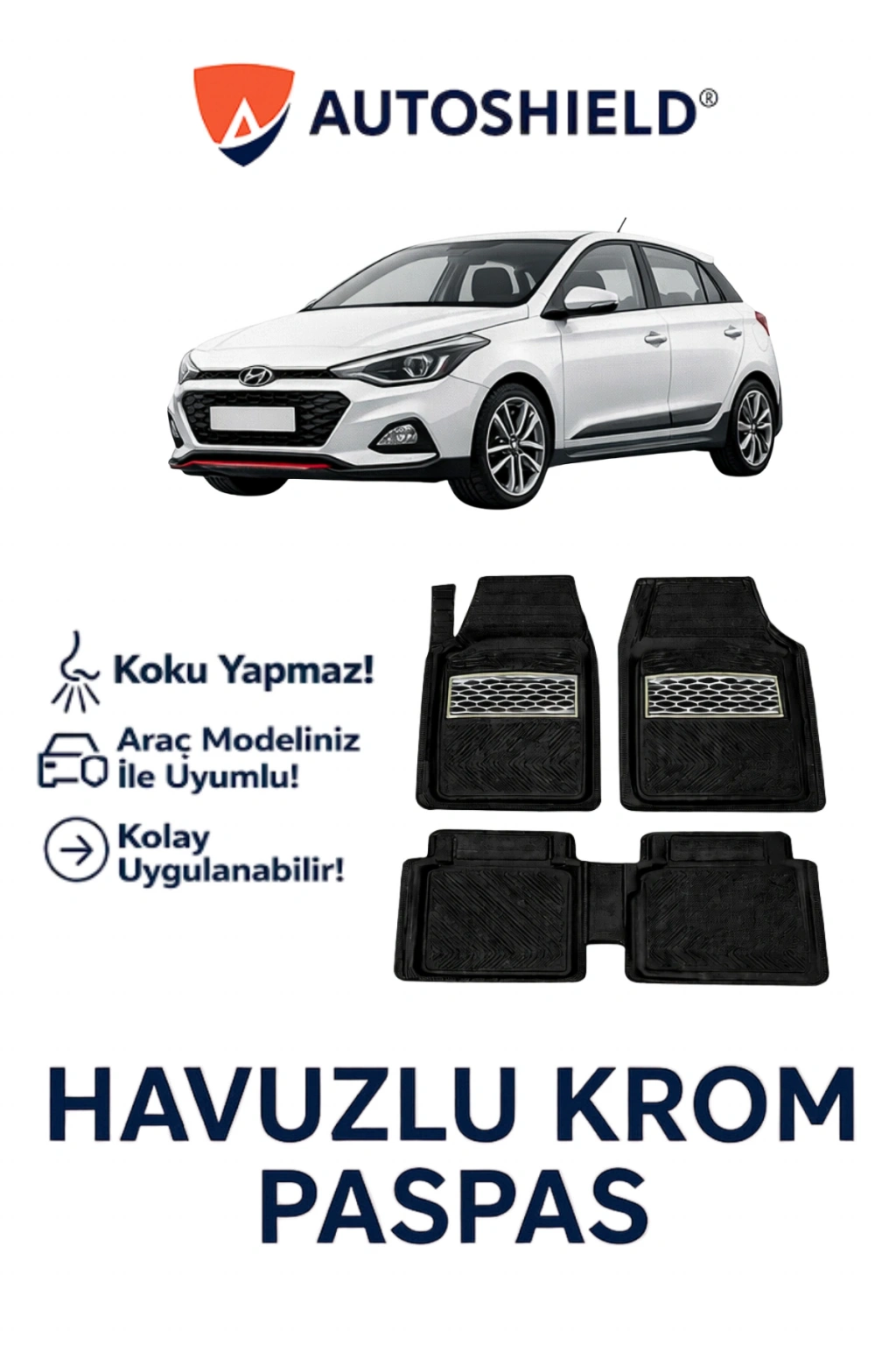 Hyundai i20 Troy Serisi Tüm Modeller ile Uyumlu Universal Derin Havuzlu Krom Karbon Paspas