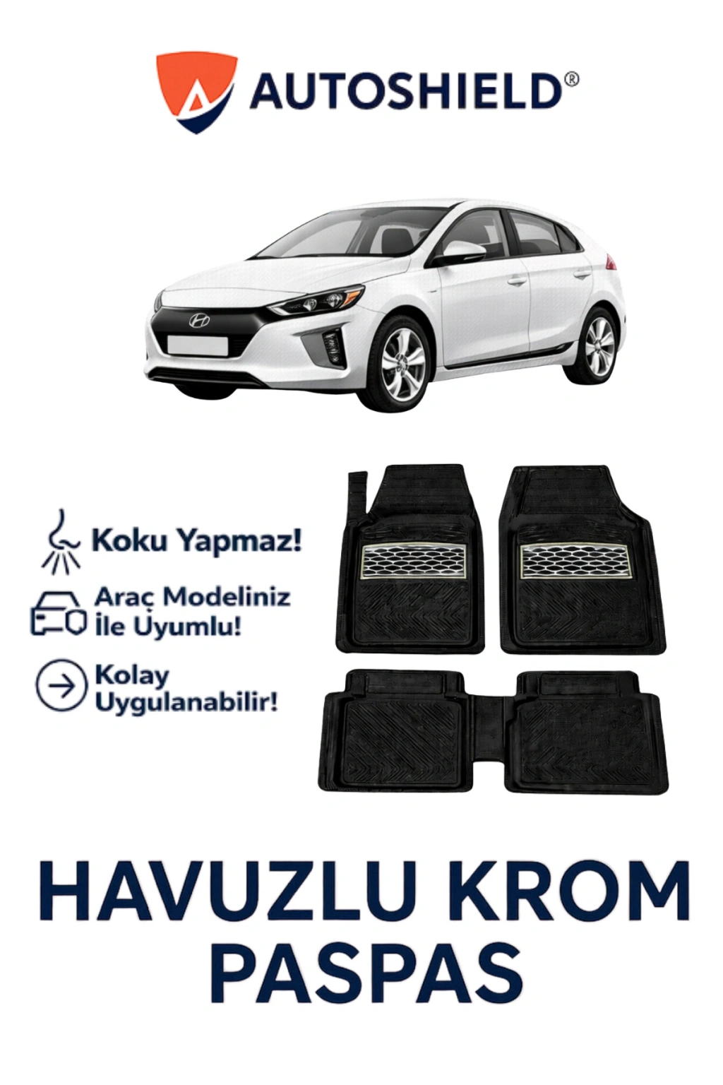 Hyundai İoniq Serisi Tüm Modeller ile Uyumlu Universal Derin Havuzlu Krom Karbon Paspas