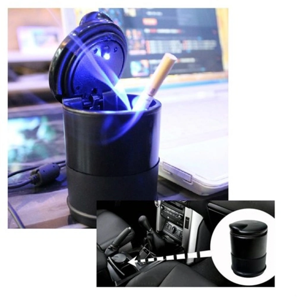 Tüm araç tiplerinde kullanılabilir, araç içi yuvarlak siyah, kaydırmaz silikon tabanlı pratik ışıklı küllük.