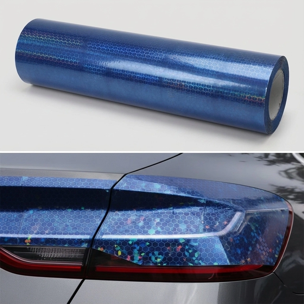 Petek Desenli 3D Colormatik Far Filmi Stop Folyosu 1mx30cm Koyu Mavi