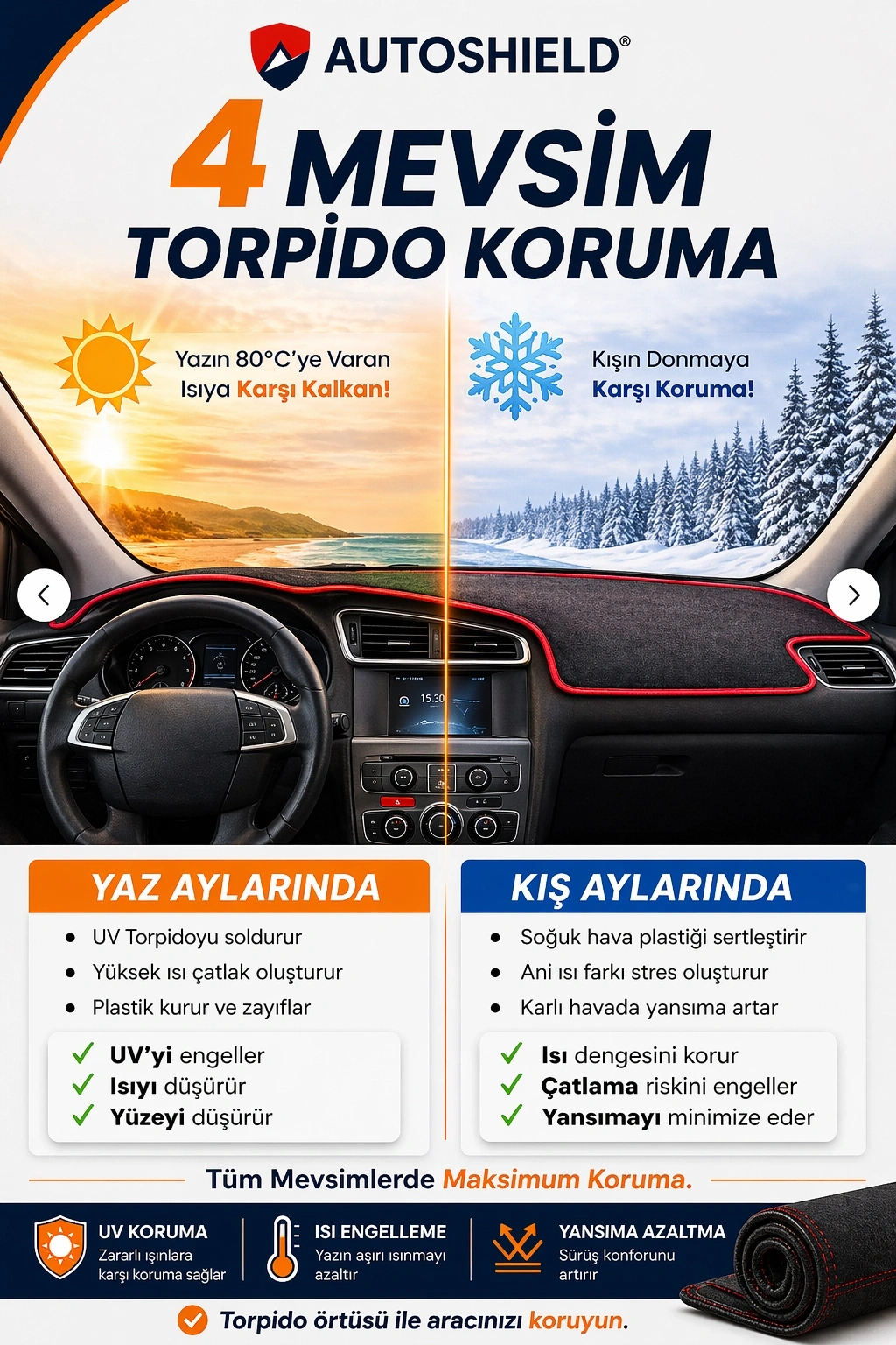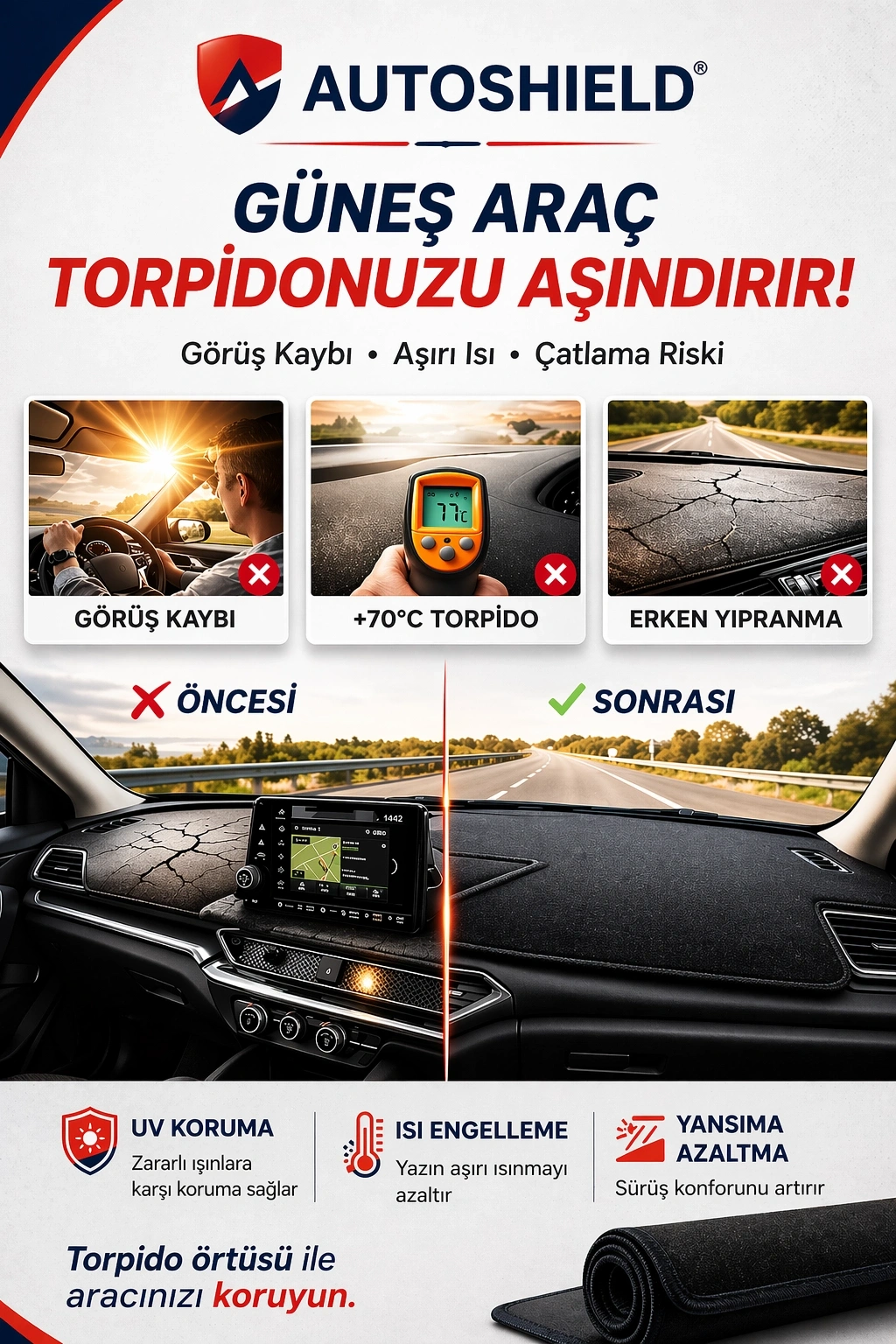 UV koruma özelliği ile torpido yüzeyini korur ve kullanım ömrünü uzatır