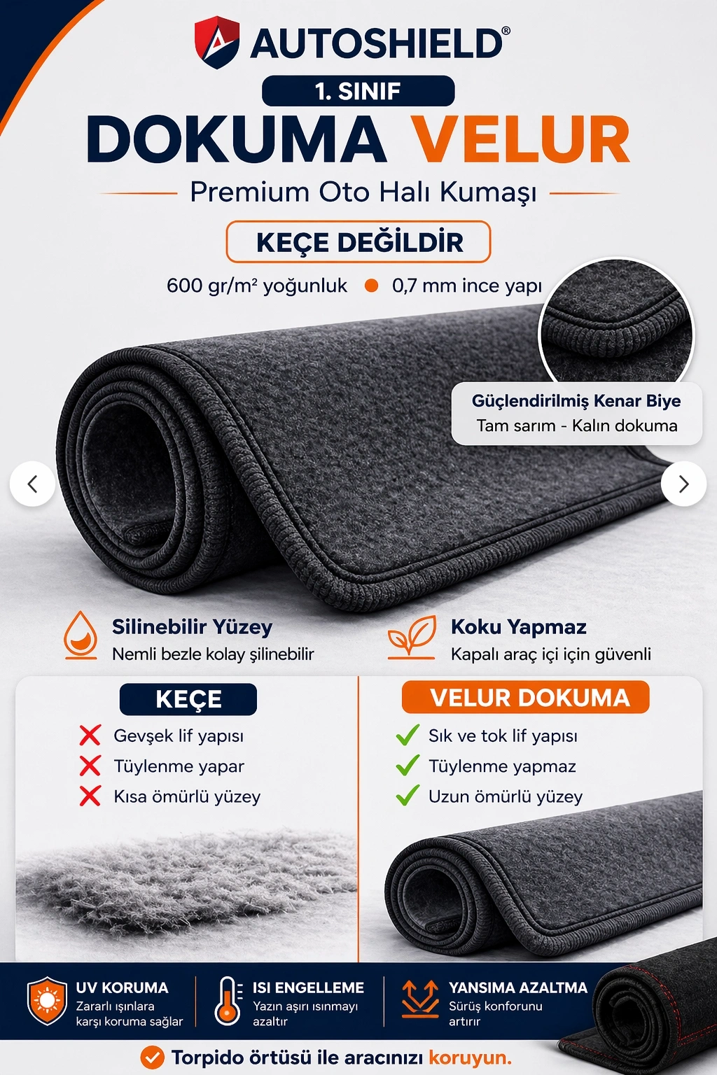 Premium Velur | Araca Özel Üretim | Güneş ve Çatlama Karşıtı Koruma