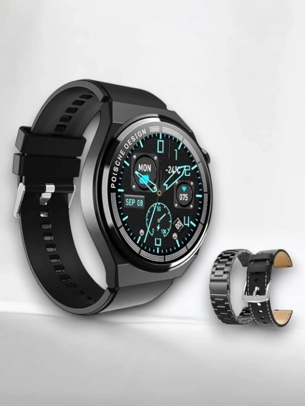 POISCHE GT3 MAX AKILLI SAAT Uygulama: Wearfit Pro SIM KART: YOK HAFIZA KARTI: YOK GPS: VAR NFC: VAR Uyumlu sistem: IOS / Android sistemi Andiord sistemi: Android 4.4 ve üstü desteği Fonksiyonlar: Bluetooth araması, 500'den fazla arama desteği, nefes eğitimi, özel aramalar, kronometre, parlaklık ayarı, çoklu spor modu, uyku takibi, kalp atış hızı, bildirim görüntüleme, uzaktan müzik kontrolü, uzaktan fotoğraf çekme (mobil uygulama içerisinden), saat ve hava durumu, Telefon bul özelliği, şifre koruması, hesap makinesi, bölünmüş ekran, hızlı widget, kadın asistan, masaj cihazı, sesli asistan, çalar saat, el feneri, güç tasarrufu modu.
