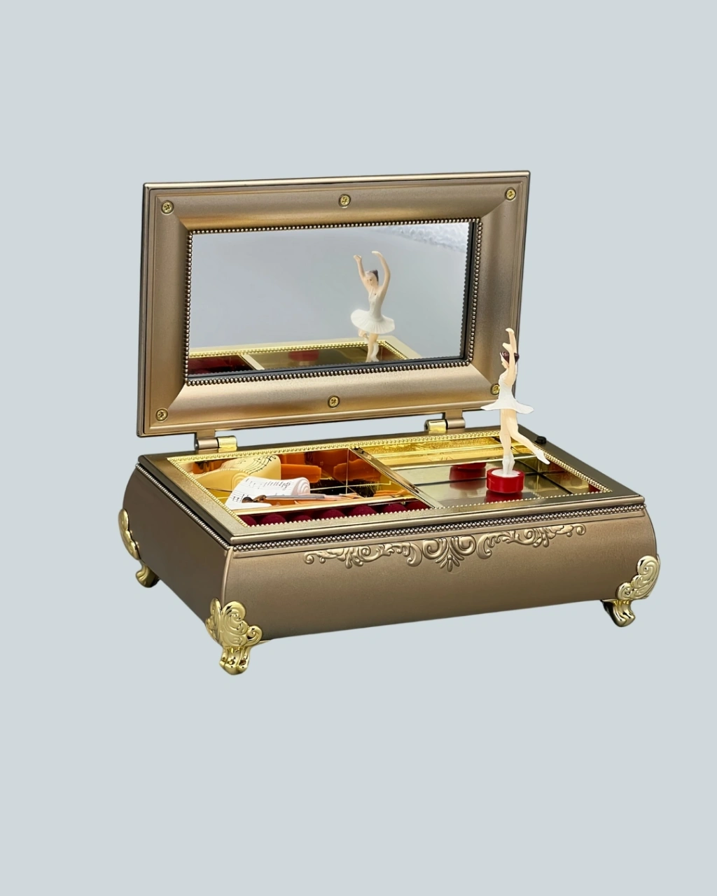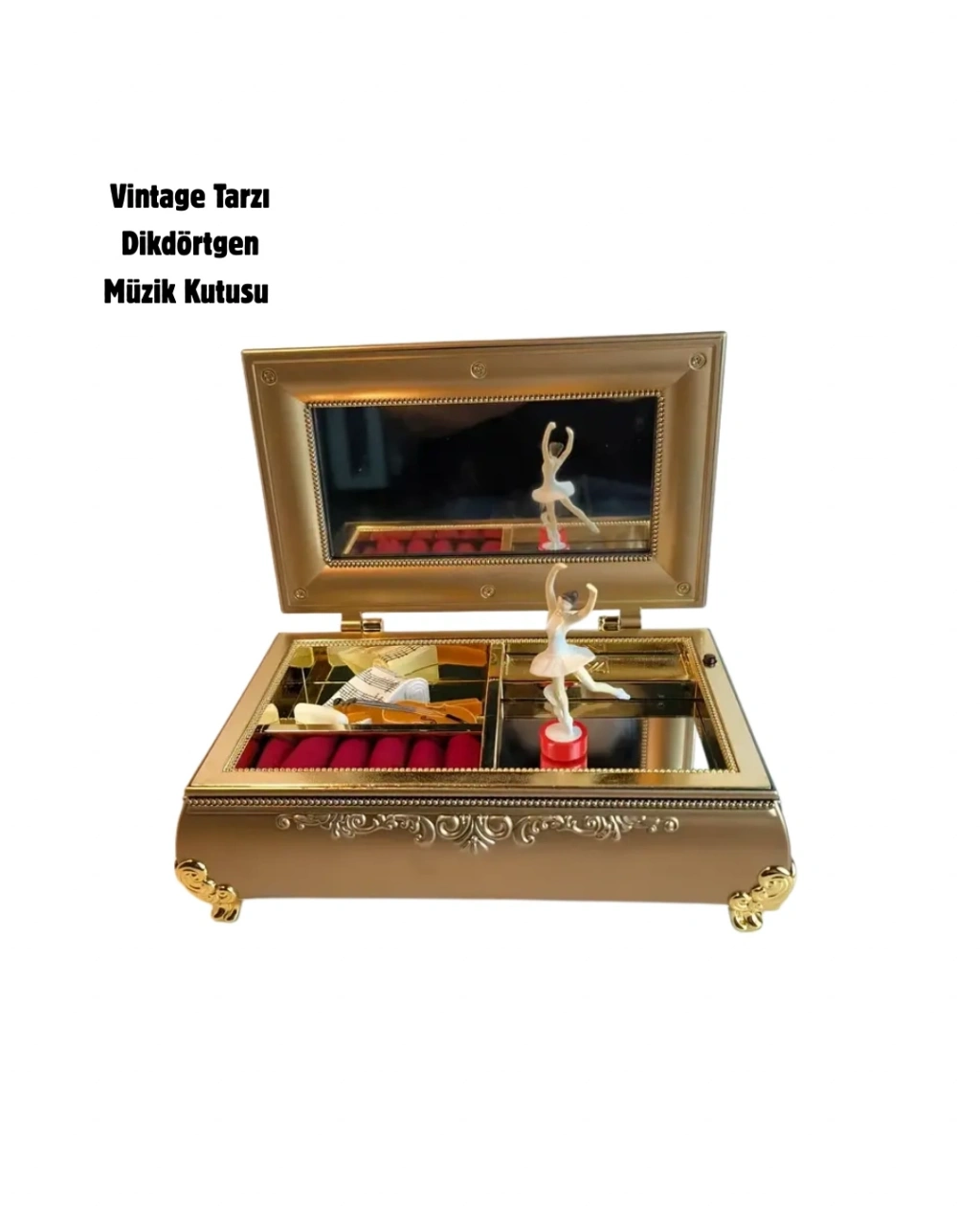 Balerinli müzikli takı kutusu, şık piyanovari tasarımı ile hem görsel hem işlevsel açıdan zengin bir üründür. Fırınlama boya tekniği sayesinde yüzeyi dayanıklıdır ve uzun süre yeni görünümünü korur. Parlak beyaz veya pastel tonlara sahip olması, ürünü özellikle kız çocuklarının odalarında romantik bir dekor haline getirir.Kutunun iç kısmında balerin figürü yer alır. Müzik başladığında bu figür eşliğinde oluşan görüntü, masalsı bir hava yaratır ve ürüne benzersiz bir karakter kazandırır. Melodi, ortamda hoş bir atmosfer oluşturur ve ürünü sadece bir takı kutusu olmaktan çıkarıp duygusal bir obje haline getirir.Takı kutusu içinde bulunan bölmeler yüzük, bileklik, küpe ve kolye gibi aksesuarların düzenli bir şekilde saklanmasına imkân tanır. Bu sayede hem es bir kutu elde edilir hem de takılar kaybolmadan düzenli biçimde korunur.Ürün hediye olarak verildiğinde de çok beğeni toplar. Bale ve müzik seven kız çocukları, genç kızlar veya nostaljik ürünleri seven yetişkinler için ideal bir armağandır. Özel günlerde kalıcı bir anı oluşturmak isteyenler için etkileyici bir tercihtir.Piyano formundaki dış tasarım; makyaj masası, komodin, raf ve vitrin gibi alanlarda dekoratif bir obje olarak kendini gösterir. Es çizgileri sayesinde yaşam alanına sanatsal bir dokunuş katar.Balerinli müzikli takı kutusu, hem tasarımının romantik havası hem işlevsel kullanım avantajlarıyla, her yaş grubuna hitap eden çok özel bir üründür. Hem şıklığı hem düzen sağlama işleviyle yaşam alanlarını güzelleştirir ve unutulmaz bir hediye seçeneği oluşturur.