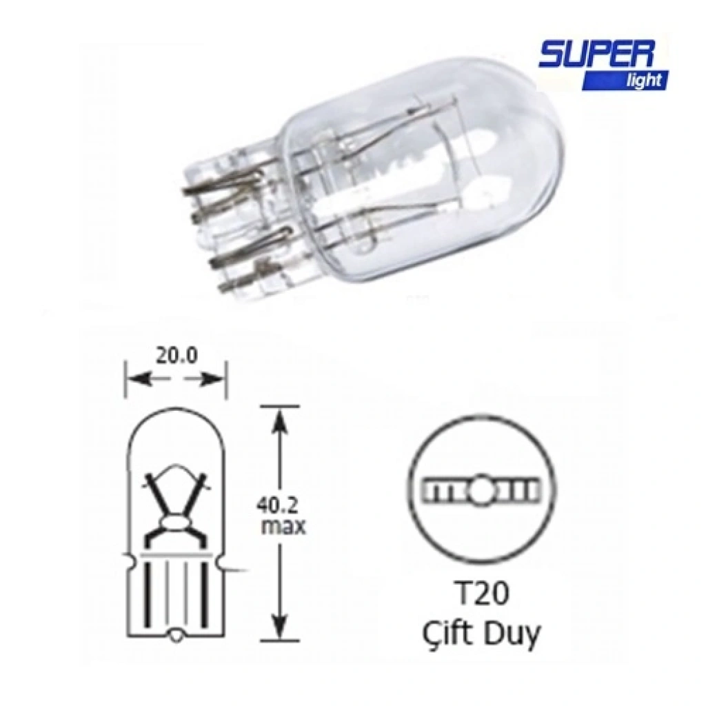 Super Light T20 Dipsiz Halojen Park Ampulü Çift Duy 1 Adet