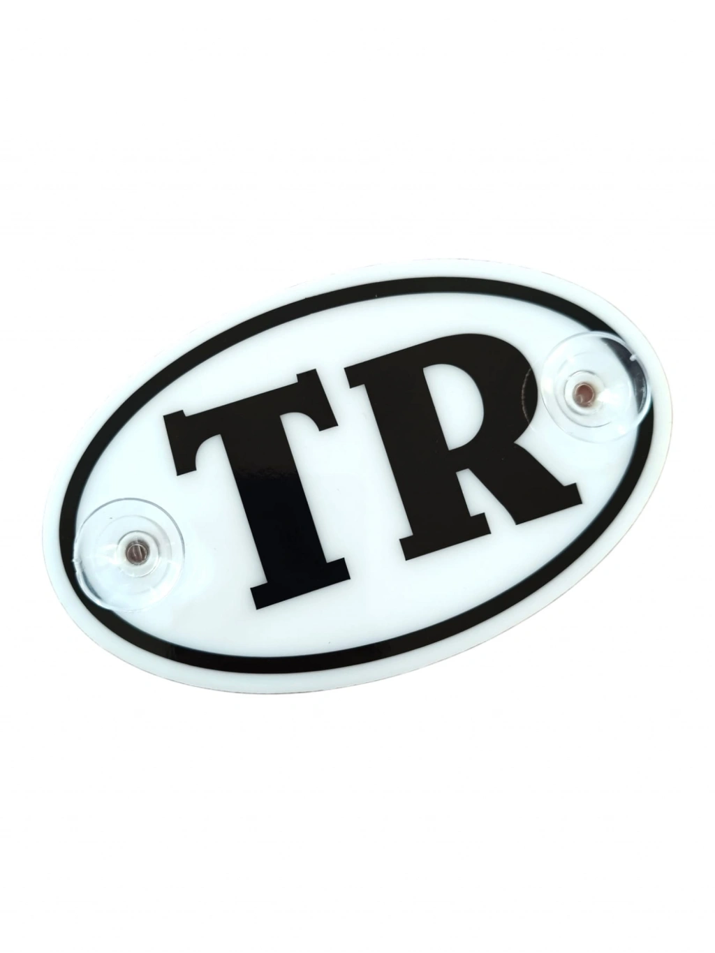 TR Plaka Oval Vantuzlu Pleksi Cam Süsü Beyaz 13x8cm