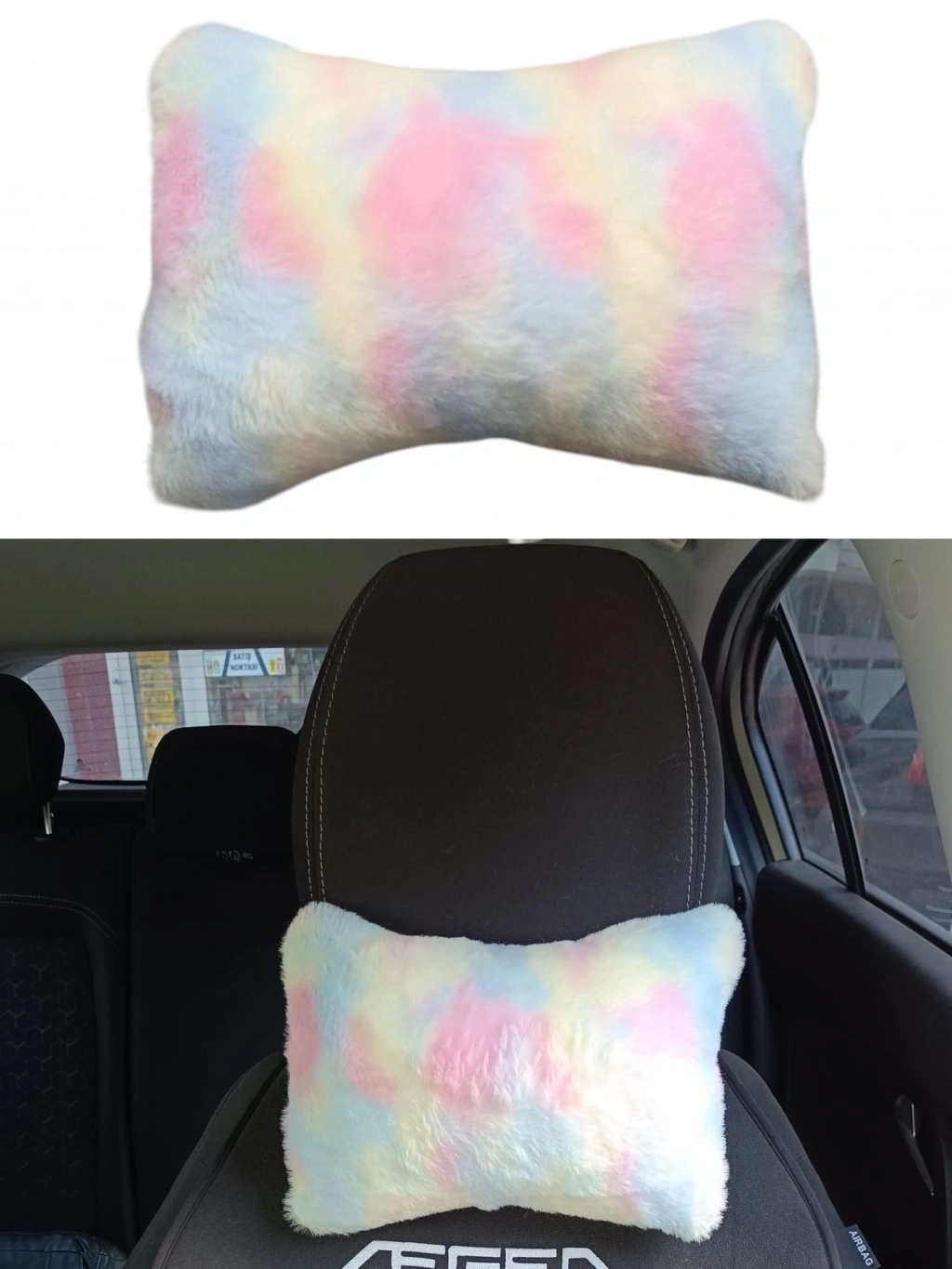1 Adet Yumuşak Peluşlu Ortopedik Araba Seyahat Boyun Yastığı (Tekli - Gökkuşağı)